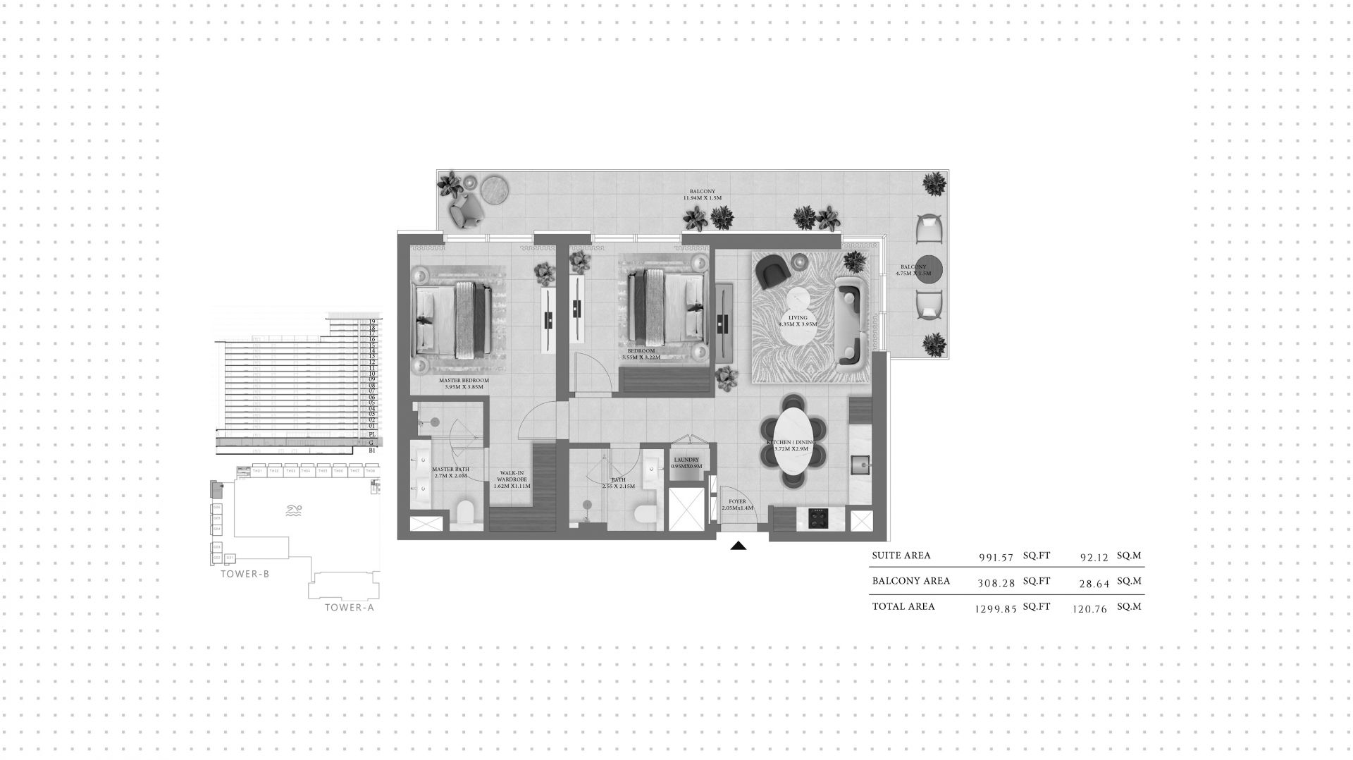 An apartment with 2 bedrooms in the complex Vida Residences Hillside. The apartment with an area of 1 300 ft² is located on the 0 of 20, finished. Windows: panoramic. Delivery of the project is scheduled for the 2st st quarter of 2029.